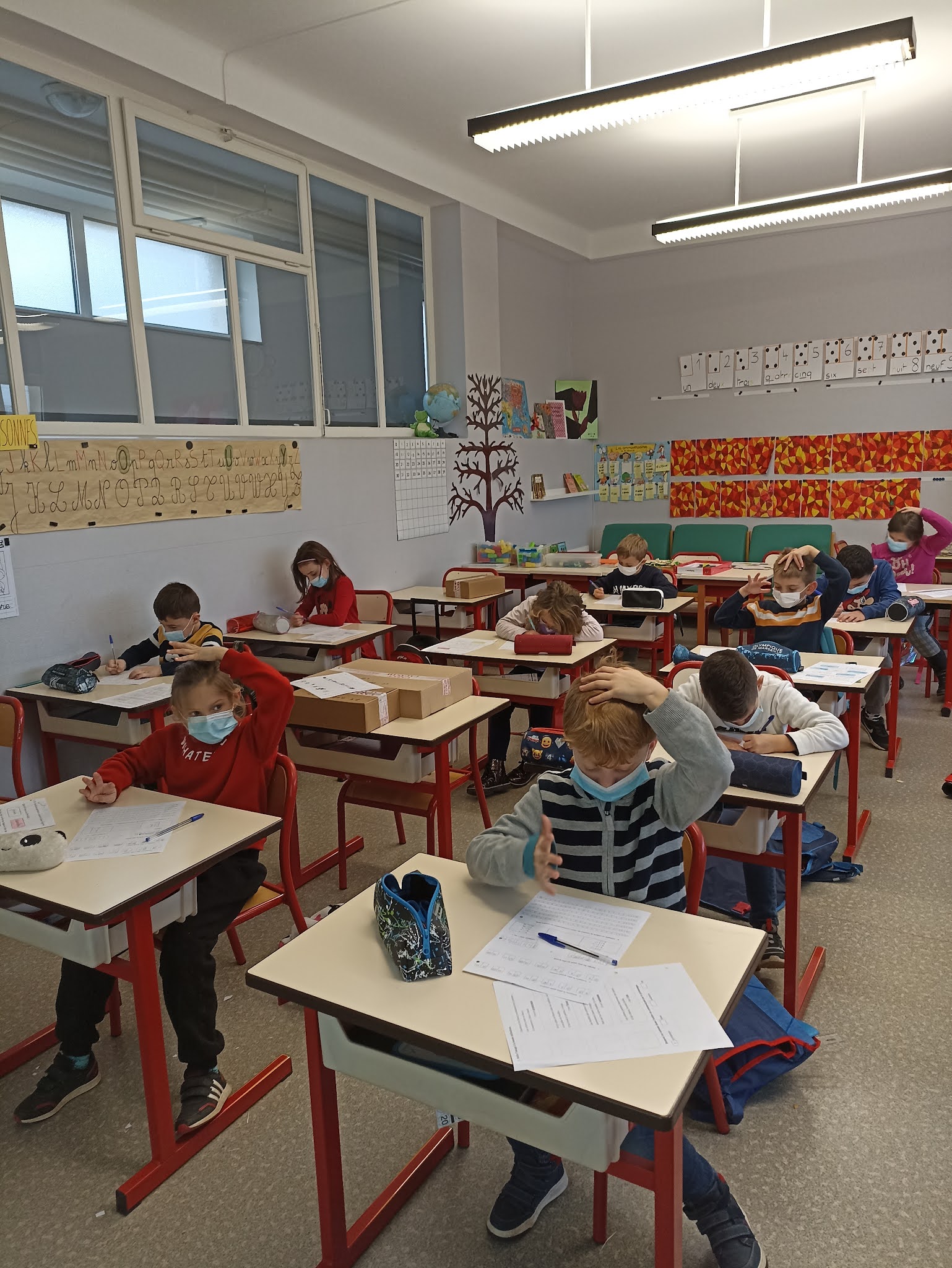 Voilà tout simplement des enfants réfléchis face à leur travail, qui sont en train de calculer!